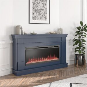 This freestanding electric fireplace comes with a handy wall mantel and shows off a distinctive shiplap design for a modern farmhouse vibe we love. Featuring life-like flames, it offers a pleasant gathering spot throughout the year – with or without heat. Though batteries are required (sold separately), this fireplace is a cinch to use and maintain. It’s clean-lined and made from engineered wood with a distinctive finish that leans in on its rustic cottage elements. Measuring a bit over 3′ tall and under 4′ wide, it’s a great accent piece for any room.