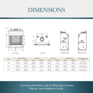 | Clearance – Combustible top mantle to unit | 27″27″ | |