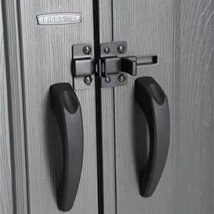 The side mate 4×8 vinyl shed is an easy-to-assemble outdoor storage solution designed to be placed on the side of your home. The contemporary design beautifies any backyard while maximizing storage space for yard tools or garden equipment. Constructed of durable all weather vinyl in a neutral ivory color, the side mate vinyl shed is maintenance free. It will never need painting or treating. It will not rust, dent, rot, mildew or fade. It is also fire retardant and much quieter in the rain than metal storage sheds. The wall columns are reinforced with a solid metal structure, giving the vinyl shed a lot of strength and making it easy to hang shelves or garden tools inside. The foundation kit provides a galvanized metal foundation. It eases the installation process, ensures a square shed and elevates your floor off the ground. With the foundation kit you’ll be able to build your shed the day you receive it.