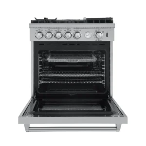 The GE 30″ Free-Standing Gas Range (Model JGBS30RETSS) delivers reliable cooking performance with a sleek stainless steel design that fits seamlessly into any kitchen. With four powerful sealed burners and a spacious 4.8 cu. ft. oven, this range makes it easy to prepare everyday meals or holiday feasts. The removable grates and lift-up cooktop simplify cleaning, while the broiler drawer gives you added flexibility for crisping and browning. Built for durability and convenience, this GE gas range is a dependable choice for families who want performance at an affordable price.