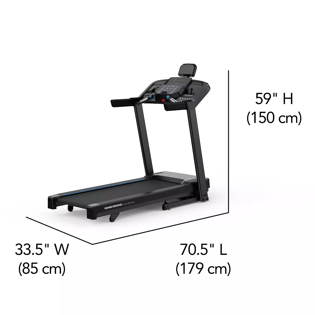 - Cushioned deck- 20″ x 55″ running area with 3-zone variable response cushioning