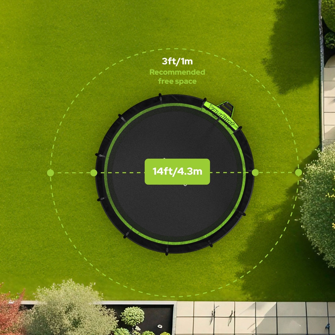 - Family fun HERO 14-foot trampoline designed for high bounce, suitable for kids and adults