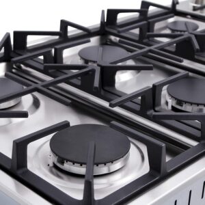 A 17,000 BTU Multiflame Burner and 5,000 BTU Even-Heatâ„¢ Simmer Burner are two of five burners that make this 30-inch gas cooktop a workhorse for any kitchen. You’ll love the feel of the Multi-Finish Knobs and the continuous cast-iron grates that allow you to effortlessly move pots from one burner to another.