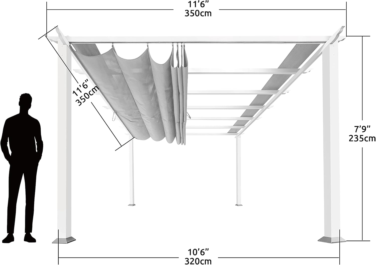 - FUNCTION AND STYLE: Our Embedded Wood Grain technology mimics the classic look of wood – without the costly maintenance. Paired with our water-resistant, UV protected canopy, this outdoor pergola is not only beautiful but durable.