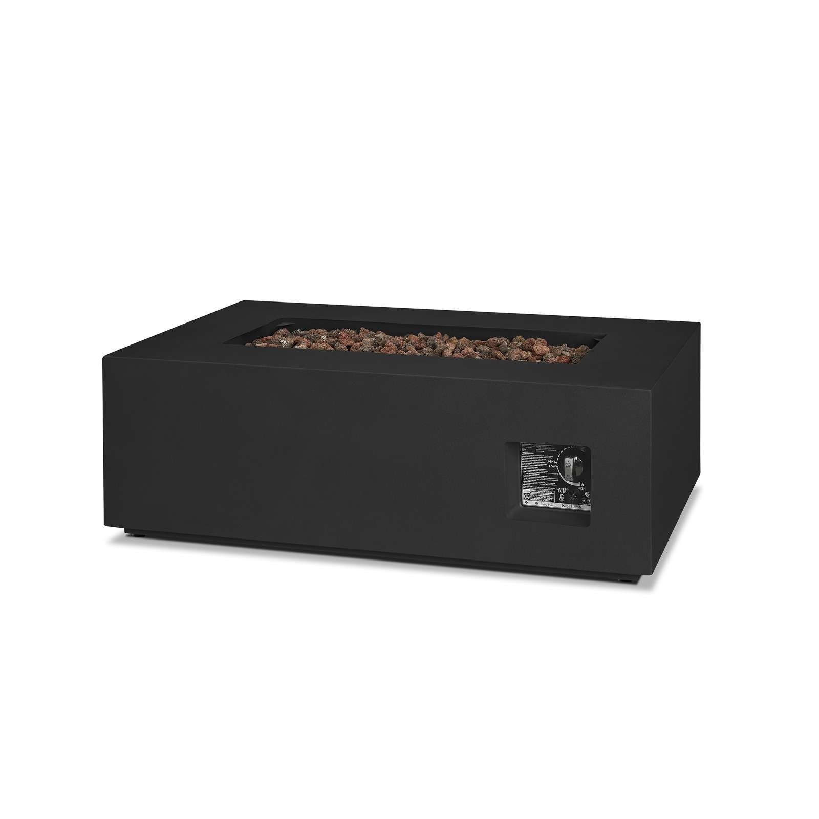 Make a stunning addition to your outdoor space with the clean, contemporary design of the Aegean rectangle gas fire table. Made of durable steel with a lightly textured finish, this outdoor fire table features a reliable push-button ignition and has adjustable flame height. Gas fire pit table with leveling feet, stainless steel burner, burner lid, lava rock, storage cover, propane hose with regulator and natural gas conversion kit are included. Providing 50,000 BTUs of heat, this outdoor propane fire pit can be converted to natural gas by a certified natural gas technician using the conversion kit. When not in use, transform this gas fireplace into a useful outdoor coffee table with the matching burner lid. Complete your patio set with the Aegean outdoor chair, loveseat, sofa and propane tank cover that doubles as a side table. Real FlameĀ® gas fire pits are CSA certified and weather, sun and rust resistant.