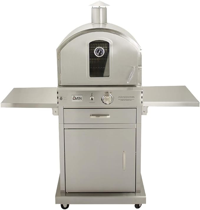 Brand Name Summerset Grills Model Info SS-OVFS-NG Item Weight 154 pounds Product Dimensions 25.5 x 54.25 x 58.5 inches Item model number SS-OVFS-NG Installation Type Freestanding Part Number SS-OVFS-NG Special Features High-power halogen interior lighting, electric starter ignition, glass viewing window, and storage drawer for utensils and accessories Oven Cooking Mode natural gas heating Color Stainless Steel Fuel type Electric, Natural Gas, Wood Door Hinges Right Material Type Stainless Steel Batteries Included? Yes Batteries Required? Yes Battery Cell Type Alkaline